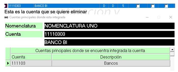 Y se selecciona Si El mensaje hace referencia que no se puede eliminar una cuenta que ya está integrada, para poder eliminar dicha cuenta nueva, de